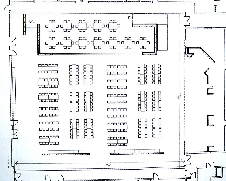 In fact, here’s a blueprint for the new cafeteria obtained by FITS that clearly shows 60 tables – or just enough to seat approximately 1,100 students in three standard lunch shifts.