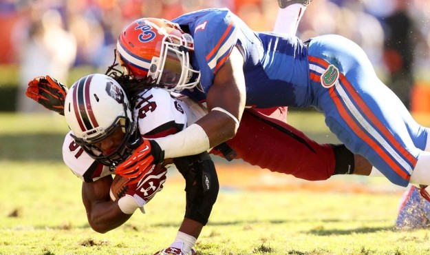 USC quarterback Connor Shaw fumbled on the Gamecocks’ opening play from scrimmage, giving the Gators a first-and-goal at the three-yard line. Three plays later Florida quarterback Jeff Driskel hooked up with tight end Jordan Reed for a touchdown – giving second-year head coach Will Muschamp’s team a lead it would never surrender.