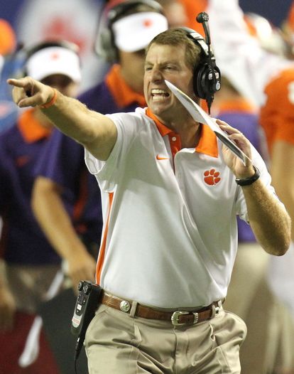 Dabo is the model of a real man is supposed to be like. He brings class and civilized to our school along with his hype and fire that have made us so good. Spurier brings man tits and embrasing losses to the coots like all other coaches who failed their.