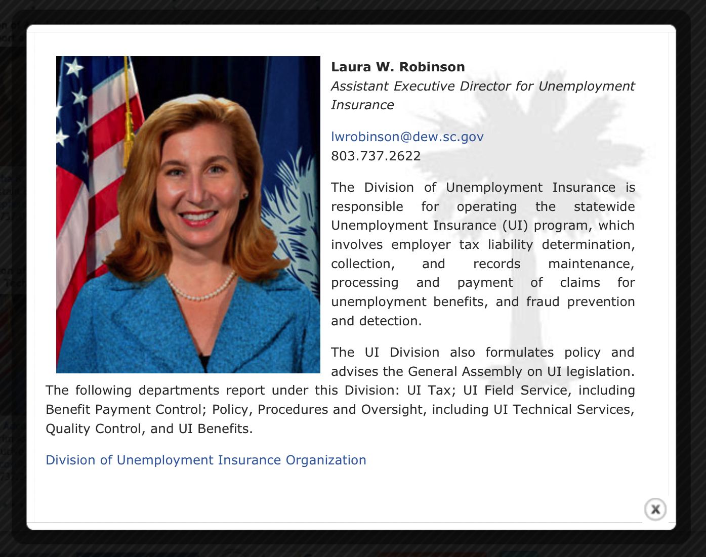 Robinson is in charge of managing unemployment insurance decisions at the agency – which has been one of the most poorly managed agencies in state government since Haley appointed retired Army General Abraham Turner to run it last September.