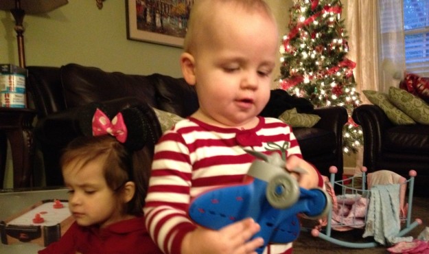 The garbage truck drove by our window while we were opening gifts, at 11:00 a.m.,