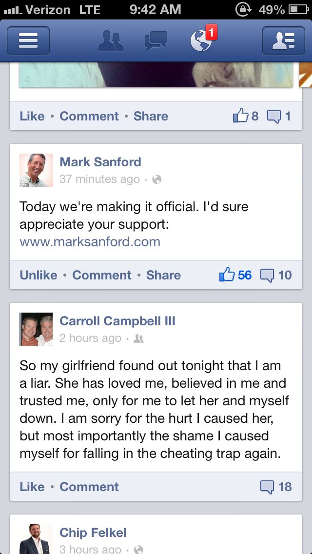 Because it appears that somebody “liked” the Mark Sanford announcement, as it has the “unlike” option under that post.