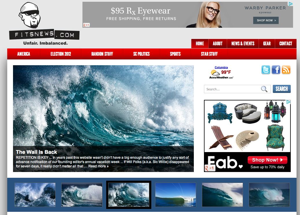 For one week each July, our founding editor withdraws from the marketplace of ideas to recharge his batteries at an undisclosed location in the Dirty Myrtle (a.k.a. Myrtle Beach, S.C.). There he rides the wild surf like a Sea God … or something like that.