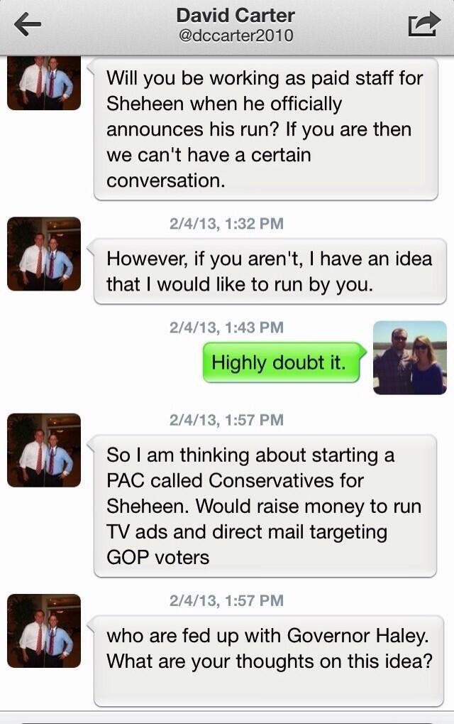 You are missing something very big in your exposure of the “new media network” established by (S.C. House) Speaker Bobby Harrell. I appreciate the work you have done so far – it is excellent – but go one step further, please. Most of your dots have been connected, but did you know David Carter – who receives information for these media sites from Trey Harrell and Thomas Higgs and then publishes the posts – previously reached out to Democrats in an effort to run coordinated attacks against Governor Nikki Haley?