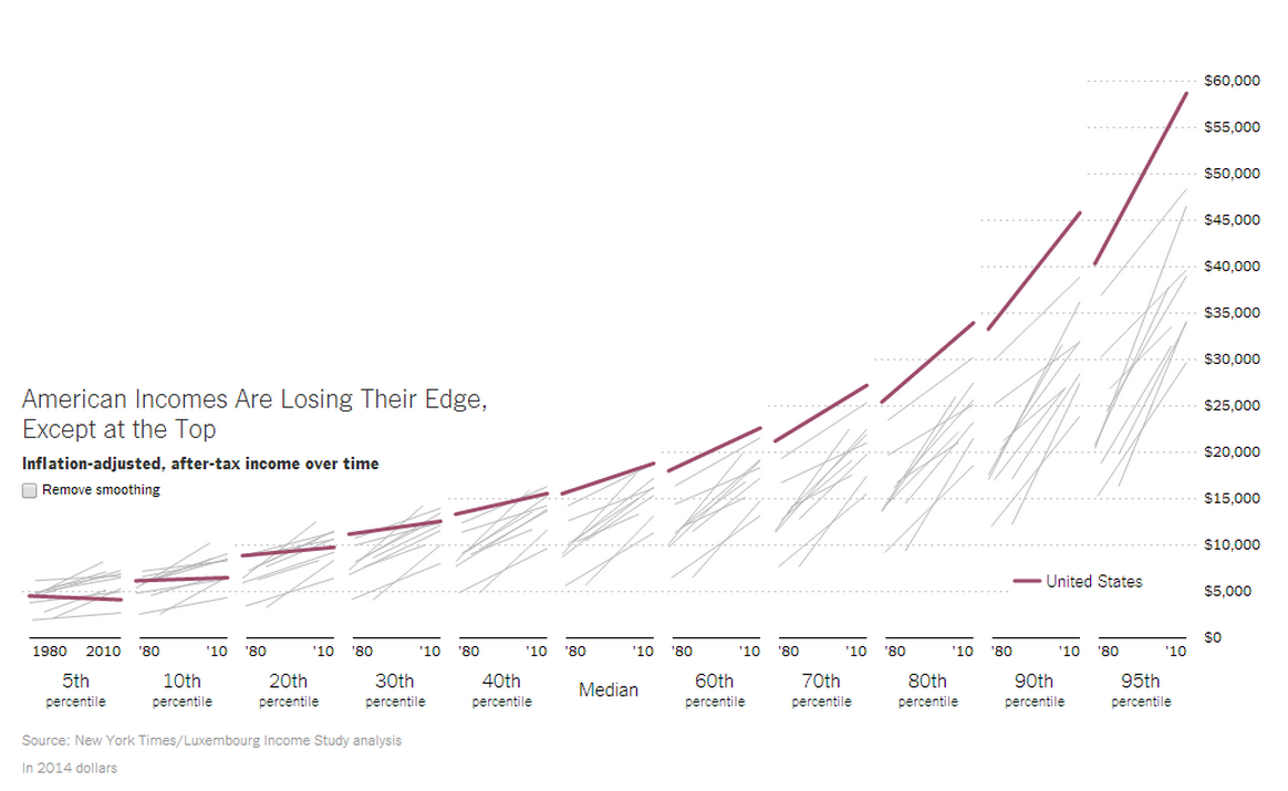 “The American middle class, long the most affluent in the world, has lost that distinction,” the report bluntly began. “While the wealthiest Americans are outpacing many of their global peers, a New York Times analysis shows that across the lower- and middle-income tiers, citizens of other advanced countries have received considerably larger raises over the last three decades.
