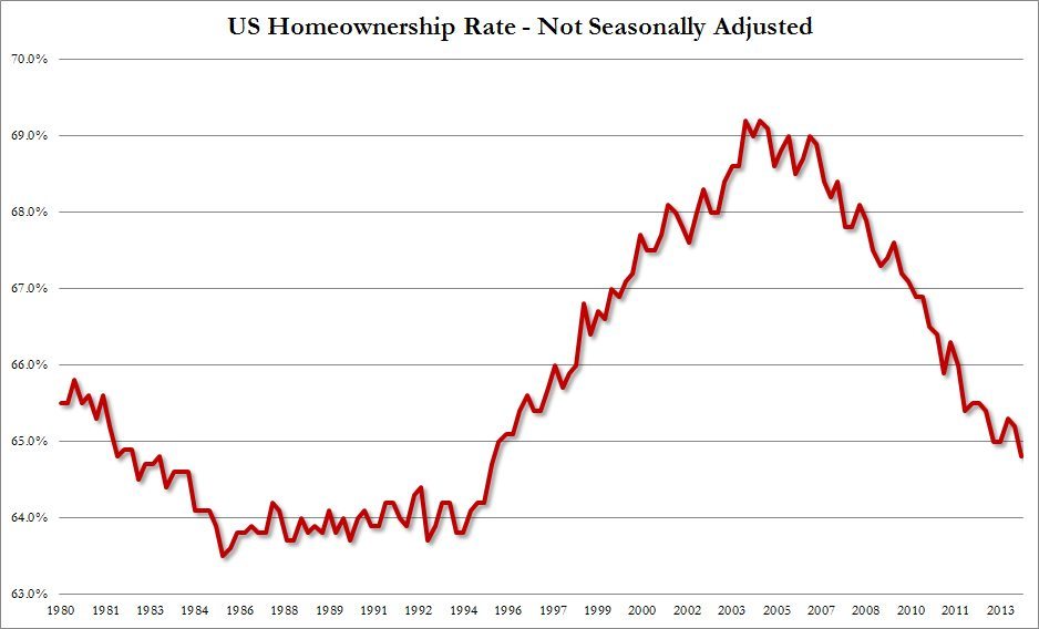 We were reminded of Stu’s plight this week when we stumbled upon a post over at Zero Hedge addressing the current status of the American Dream – namely plunging homeownership rates and soaring rents (which when you stop and think about it is more like an American nightmare).