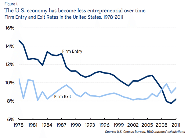 Frightening new data on the state of American entrepreneurship has been uncovered by a Brookings Institution report released earlier this week.