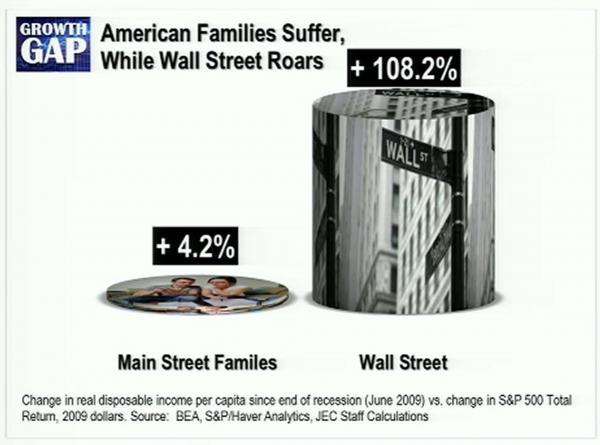 “The only people doing well in this recovery are those who have benefited from the Federal Reserve’s continued monetary morphine that has juiced profits on Wall Street, while family incomes have stagnated,” Brady said last week in a statement.