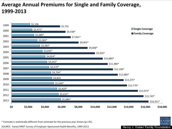Courtesy of the Kaiser Family Foundation, here’s a visual look at recent health care increases … which have kept right on trucking since the law was passed in 2010.