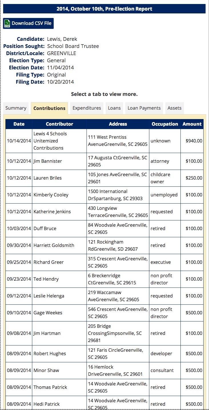 Impressed that FITS has such time on hand to dig into the campaign contributions of a lowly school board race. I would encourage anyone who is concerned about this race to check out my website http://www.Lewis4Schools.com and contact me directly should you have any further questions.