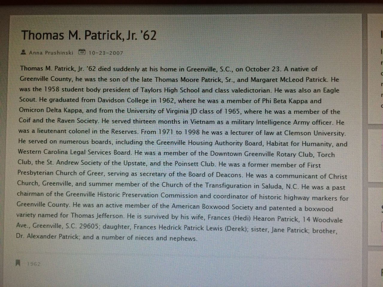 True, the estate of Tom Patrick made a donation to my campaign. Tom, my Father-in-law, did pass away 7 years ago, and this check, written by my very much alive mother-in-law, Hedi Patrick, was from a joint checking account that she still has open. When we recorded the donation, we listed both donors and only one showed up on the report. But, we have corrected this on an amended submission.