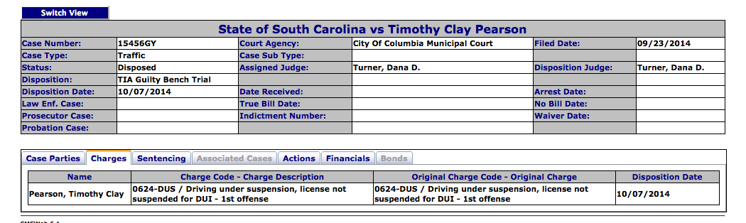 A review of Richland County court records uncovered multiple cases involving Pearson – including a September 23, 2014 arrest for driving with a suspended license.