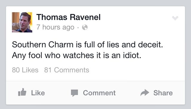 Thomas doesnt want people to watch a show that he signed up for. Well…by that same argument….Thomas probably also never wanted people to vote for him?? It’s crazy twisted Bro…but keep going Son…you got a lot more of that to offer, just by being Thomas Ravanel….not like we have any less drama from our folks in the legislature.