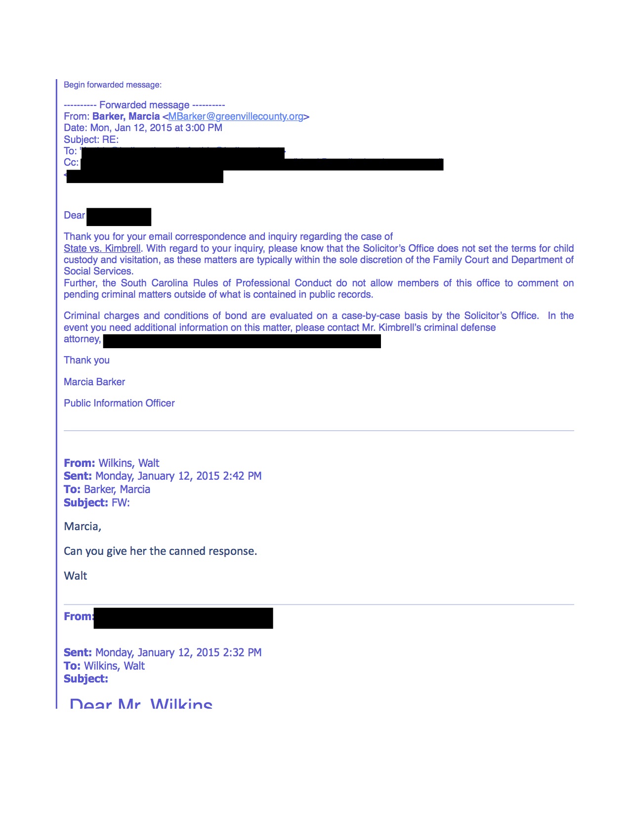 Again … we’re not claiming to know what specific evidence triggered Kimbrell’s arrest. Nor are we presuming to know Wilkins’ reasons for pressing forward with the case in the wake of SCDSS “unfounding” the allegations.
