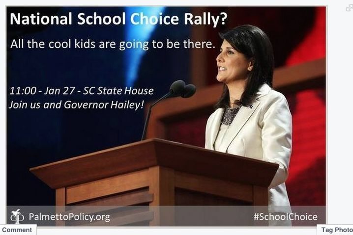 According to an online flyer distributed by the Palmetto Policy Forum – former U.S. Senator Jim DeMint‘s South Carolina-based think tank – Haley will be participating at a rally this week in support of school choice.