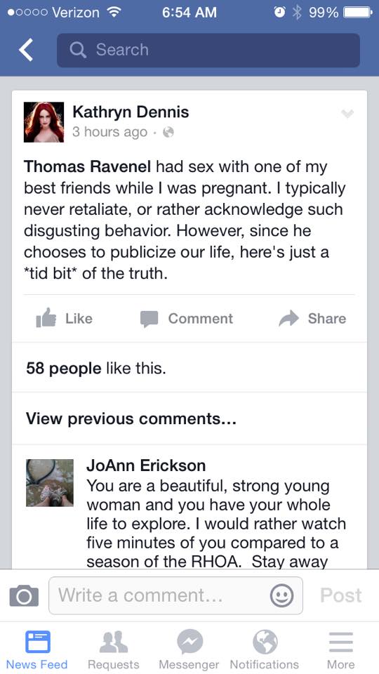 Thomas Ravenel is so immature. It’s hard to believe that he is 52 years old. He needs to grow up. On Southern Charm, he’s constantly saying how Kathryn is immature and irrational. I think not. That’s him . . . constantly saying inappropriate things in public, discussing his personal relationship on camera with friends like a college student, lying to Kathryn about his relationship with other women, filming that stupid “dancing commercial” and failing to comprehend what’s wrong with it, and now he posts deeply personal information on Facebook. I don’t know ANY 52 year old that behaves this way. Hell, I don’t know any 30 year old that behaves this way. I blame it, in part, on being an entitled brat. Another issue is his choice of friends. Whitney, for example. Another middle-aged, entitled brat that still lives with his mommy and refuses to grow up. I love how he criticizes Kathryn when he’s nothing to brag about himself. What man does that? It’s totally classless! So much for “southern charm.” No wonder these guys aren’t married. Who the hell would want to marry them? Answer: no one that I know!