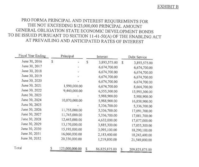 In fact taxpayers would shell out $30.6 million in borrowing costs before paying a dime of principal under Haley’s plan. And another $12 million in interest-only payments would be made in years eight and ten of the seventeen-year obligation.