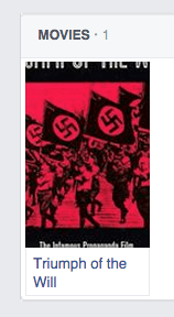 Well, Goldsmith’s Facebook page (well, the page he shows to the public) references just one “liked” movie – the 1935 Nazi propaganda film, Triumph of the Will.