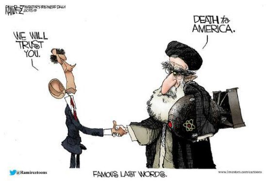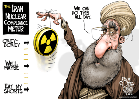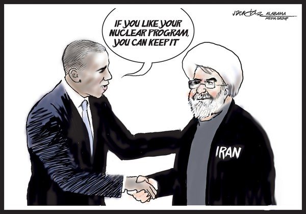 Anyway, while GOP primary voters ponder yet another capitulation on the part of their party, editorial cartoonists around the country are weighing in on Barack Obama‘s “historic” agreement – which was praised in Iran as an “answered prayer.”
