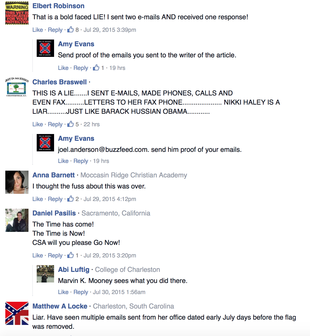 That’s a big fat lie,I sent the governor an E-Mail right after she jump into bed with the NAACP and the flag came down!!!