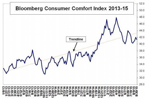 Bloomberg’s Consumer Comfort Index (CCI) – which measures consumer comfort on a scale of zero to 100 – dipped from 42 to 41.4 last week. It’s not a significant decline, but it stopped three weeks of upward motion.