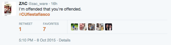 Was anyone else offended? No. In fact the one student who bothered to responded to the Taco Night haters tweeted “I’m offended that you’re offended.”