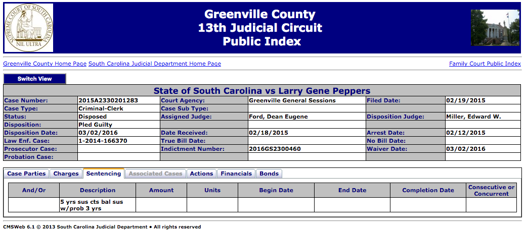 A little over a year ago, this website was given a heads-up from S.C. attorney general Alan Wilson‘s office regarding a child pornography arrest in Greenville County, S.C. The defendant in this case – Larry Gene Peppers – was a prominent Upstate “economic developer,” and Wilson’s office apparently thought we would be interested in covering the arrest given our contempt for such crony capitalists.