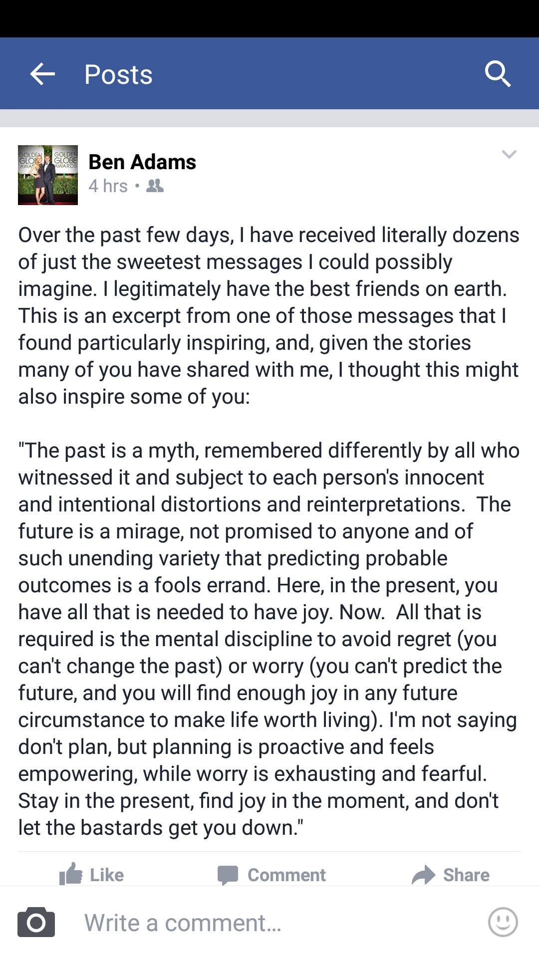 Adams has yet to comment on the allegations against him. He has, however, addressed the situation on his Facebook page – quoting an unnamed friend who advised him that “the past is a myth, remembered differently by all.”