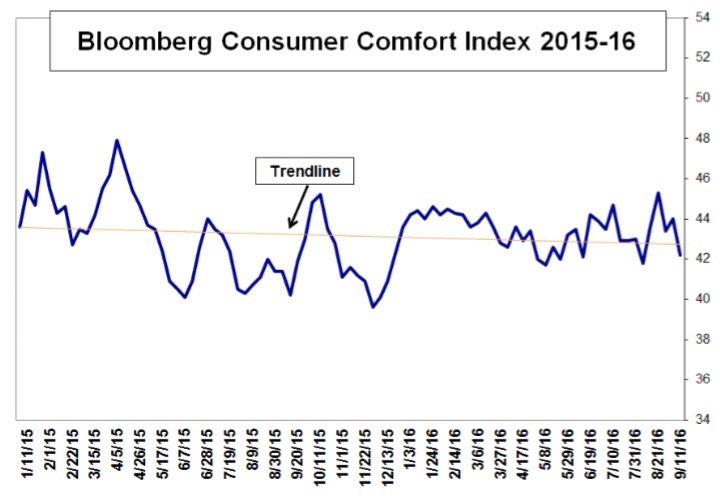Bloomberg’s Consumer Comfort Index (CCI) took another dive this week – plunging 1.8 points to 42.2 out of 100.