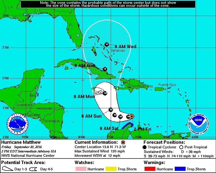We will continue to monitor Matthew’s progress as it moves through Jamaica and Cuba towards the United States. Hopefully by Sunday we will have some idea as to whether it will threaten the east coast or drift harmlessly out to sea.