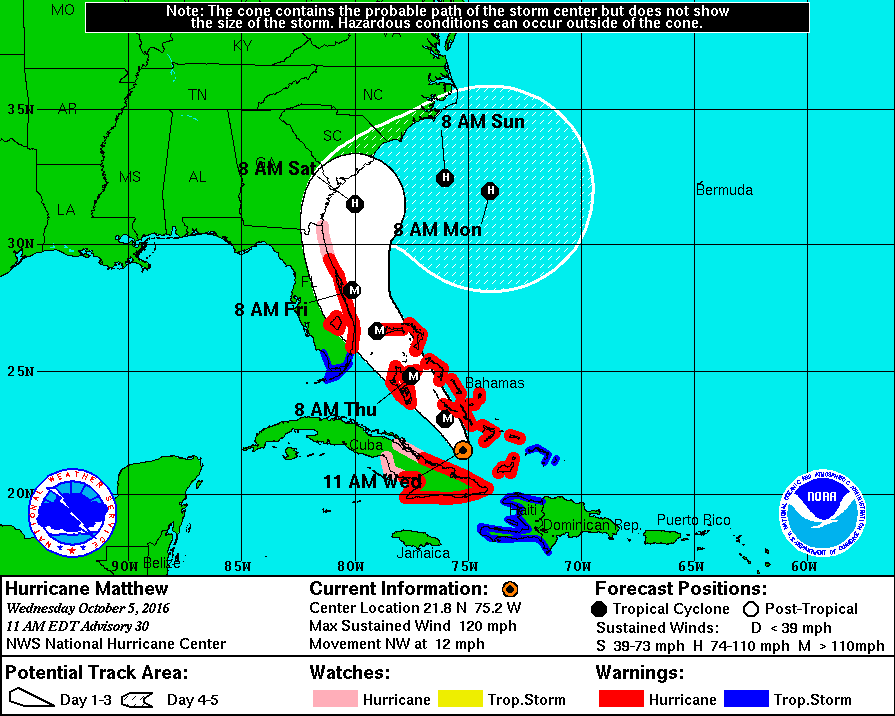 First, here is Matthew’s latest five-day forecast window …
