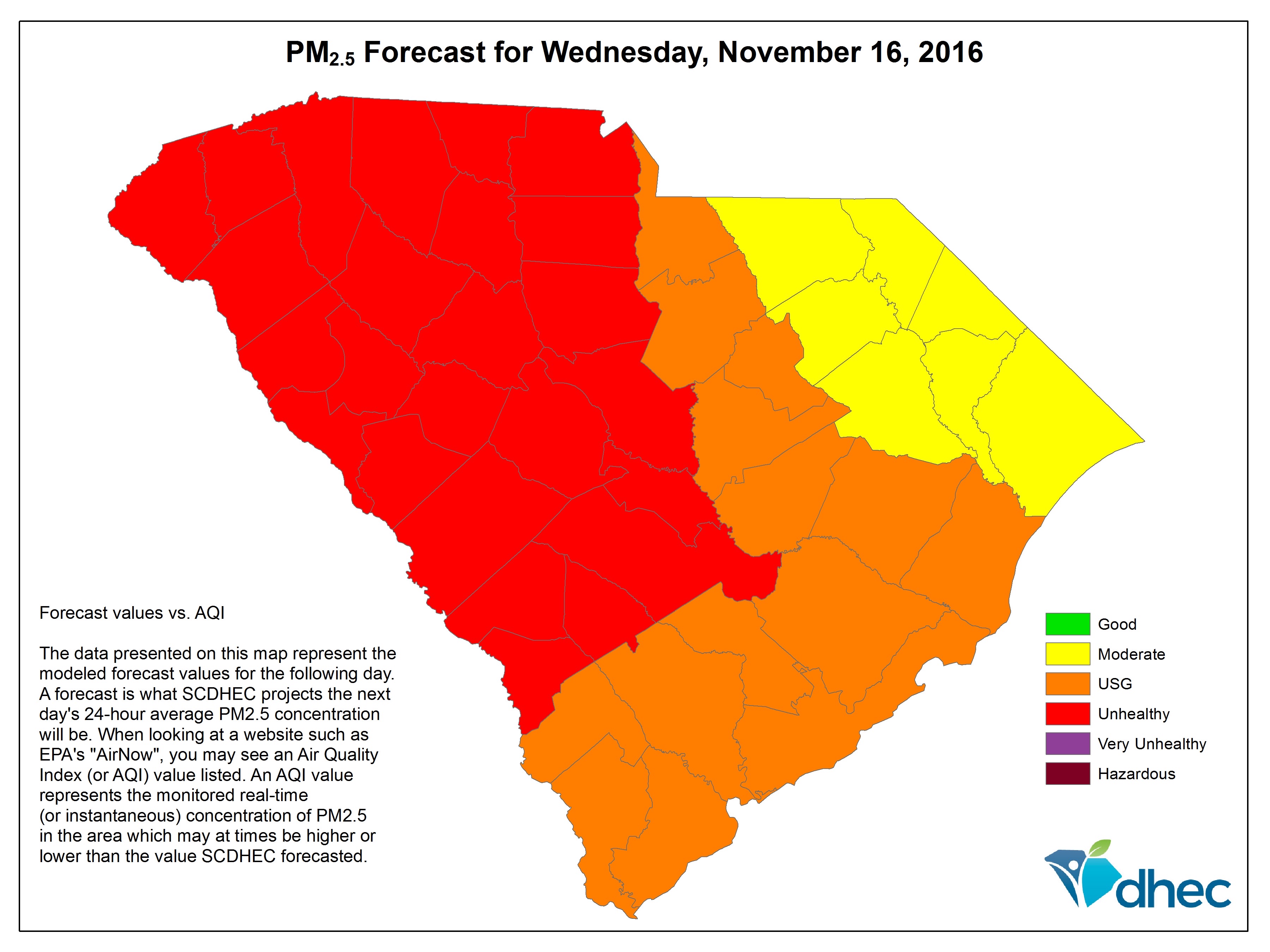 According to the S.C. Department of Health and Environmental Control (SCDHEC), the Code Red – a.k.a. universal “unhealthy” air – alert applies to twenty-five of the Palmetto State’s forty-six counties.