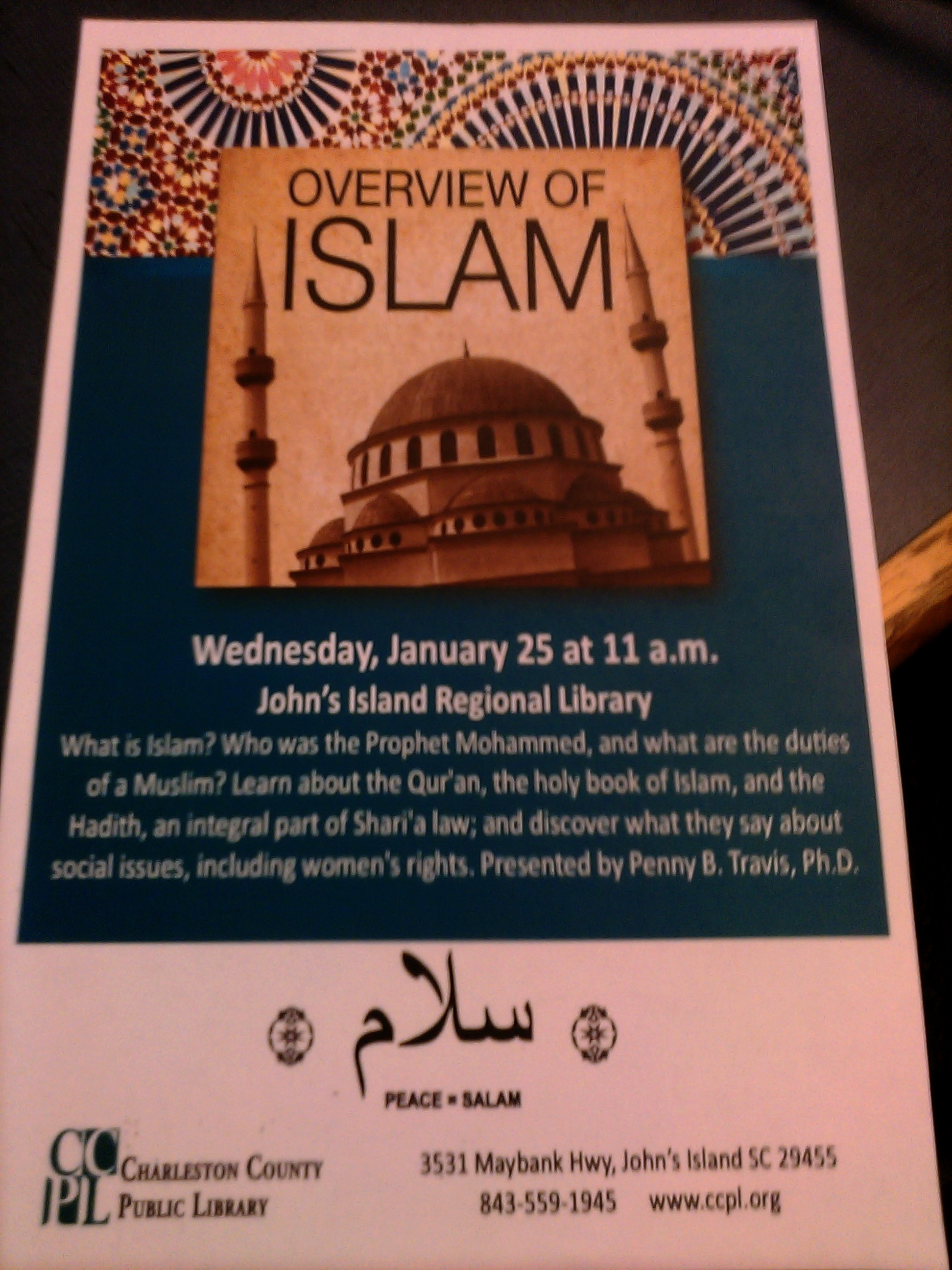 Down in Charleston, S.C., the county library system is embroiled in a controversy that could cause some to revisit the issue. We’re referring to an “Overview of Islam” presentation the county’s Johns Island, S.C. branch is hosting late next month.