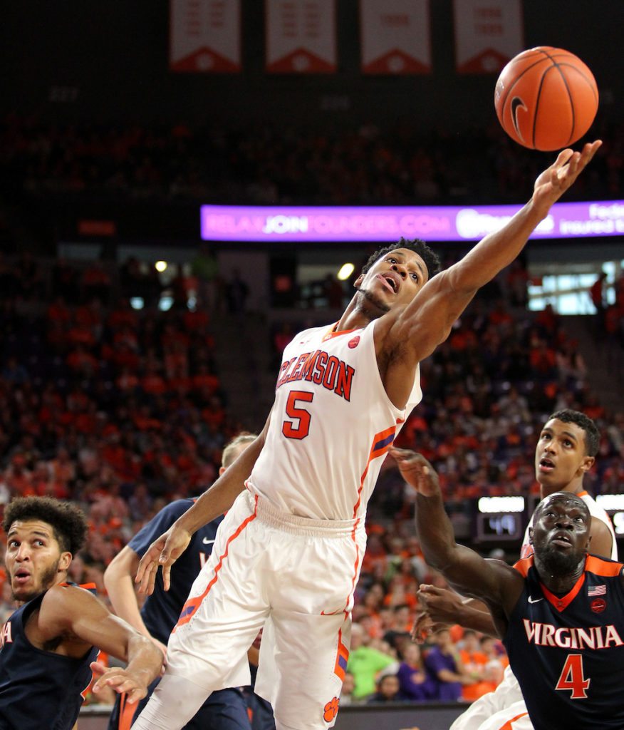 Redshirt senior forward Jaron Blossomgame is a likely first-round NBA prospect, averaging 18.4 points, 6 rebounds, 1.6 assists, 1.3 blocks and 0.9 steals per game. Blossomgame poured in 22 points in the Tigers’ loss to Virginia on Saturday, by the way.