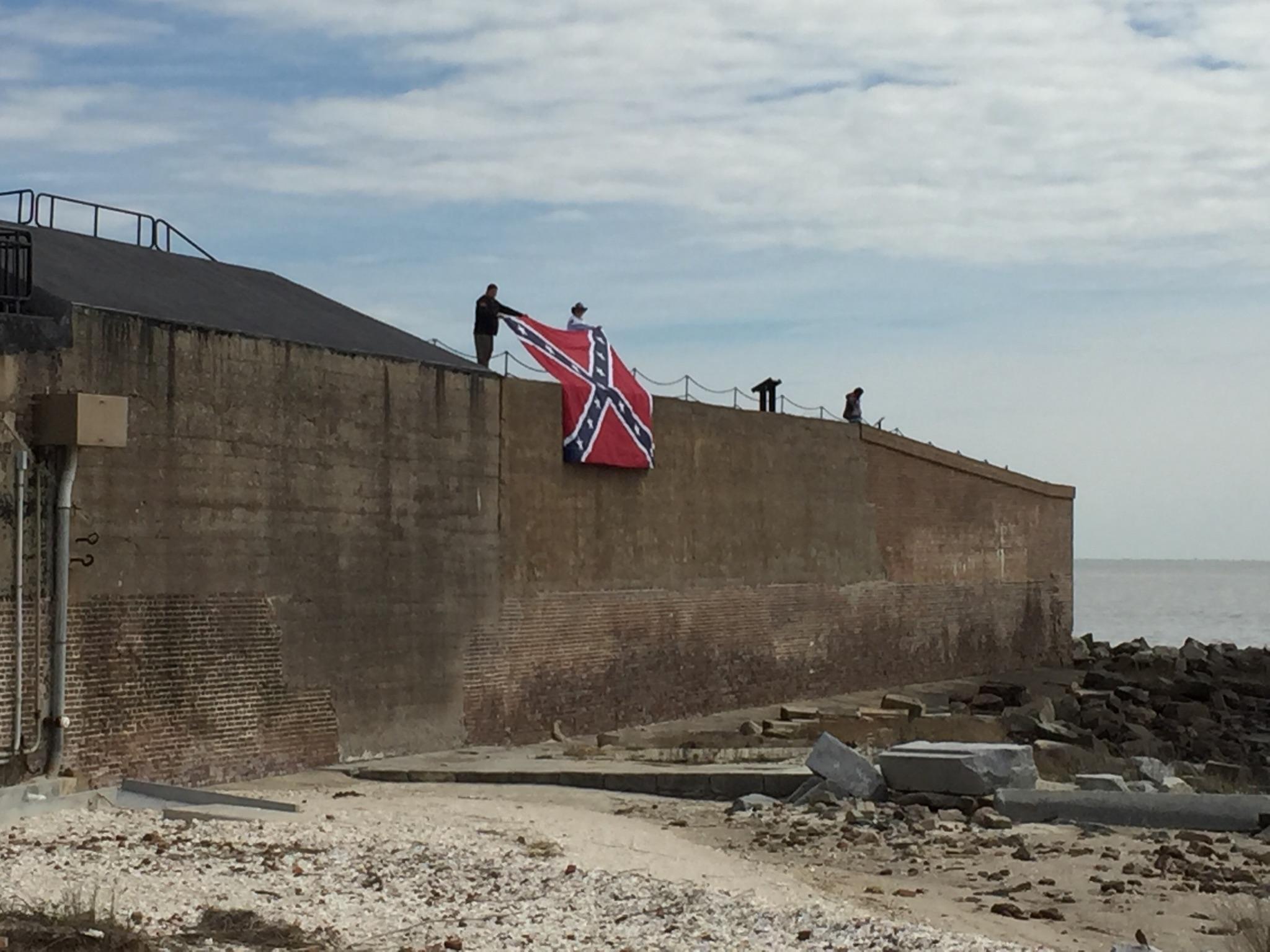 Bessenger calls it “flagging” – taking a ten-by-fifteen-foot Confederate flag to a high-profile landmark and unfurling it in a highly-visible location. This weekend, Bessenger and Braxton Spivey – a member of the S.C. Secessionist Party’s board of directors – took their banner to Fort Sumter, a national monument in Charleston Harbor that commemorates the April 1861 commencement of hostilities between Union and Confederate forces.