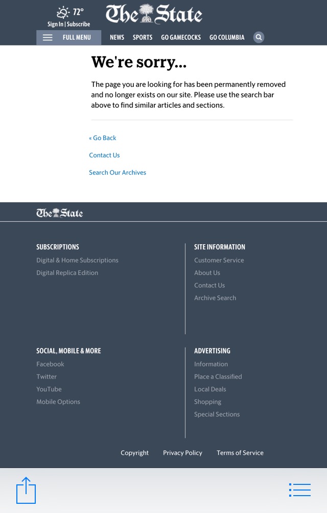 “The page you are looking for has been permanently removed and no longer exists on our site,” the notification reads.