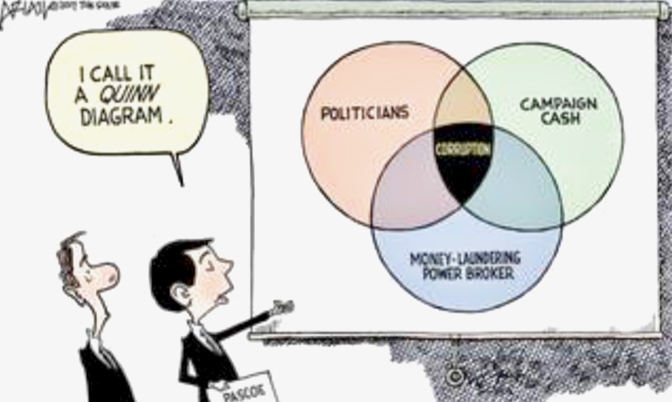 For those of you who have been hiding under a rock the past two years (or “Rip Van Winkling”), that’s a rendering of special prosecutor David Pascoe detailing a Venn diagram in which “politicians,” “campaign cash” and an alleged “money-laundering power broker” combine to produce “corruption.”