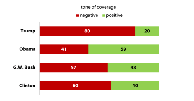 “Of news reports with a clear tone, negative reports outpaced positive ones by 80 percent to 20 percent,” the study found.
