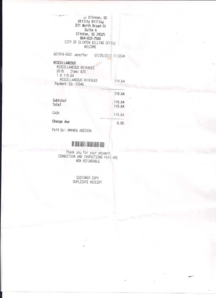 Late last month, on July 25, a cash payment in that amount was recorded by the city’s utility billing department as having been received from Amanda Addison.