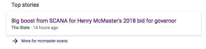 Not only that, the paper rewrote its headline for the story – changing the wording from “SCANA showered McMaster with campaign cash as nuclear hopes derailed” to “Big boost from SCANA for Henry McMaster’s 2018 bid for governor.”