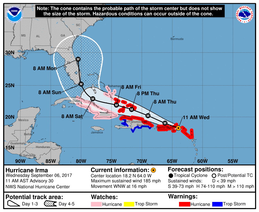 Obviously if this forecast track materializes – and if Irma maintains anything resembling its current intensity – we are looking at an exceedingly dangerous situation developing within the next three to four days.