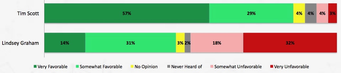 By comparison, U.S. Senator Tim Scott was viewed “very favorably” by 57 percent of SCGOP primary voters and “very unfavorably” by only three percent of respondents.