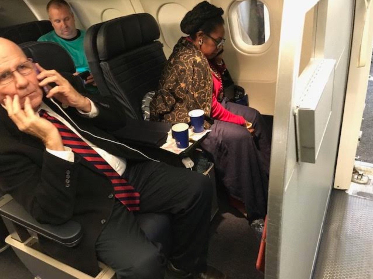 The drama went down at George Bush International Airport one week before Christmas. According to 63-year-old Jean-Marie Simon, a Washington, D.C. attorney and private school teacher, United gave her first class seat to Jackson Lee after she allegedly cancelled her flight on a mobile app.