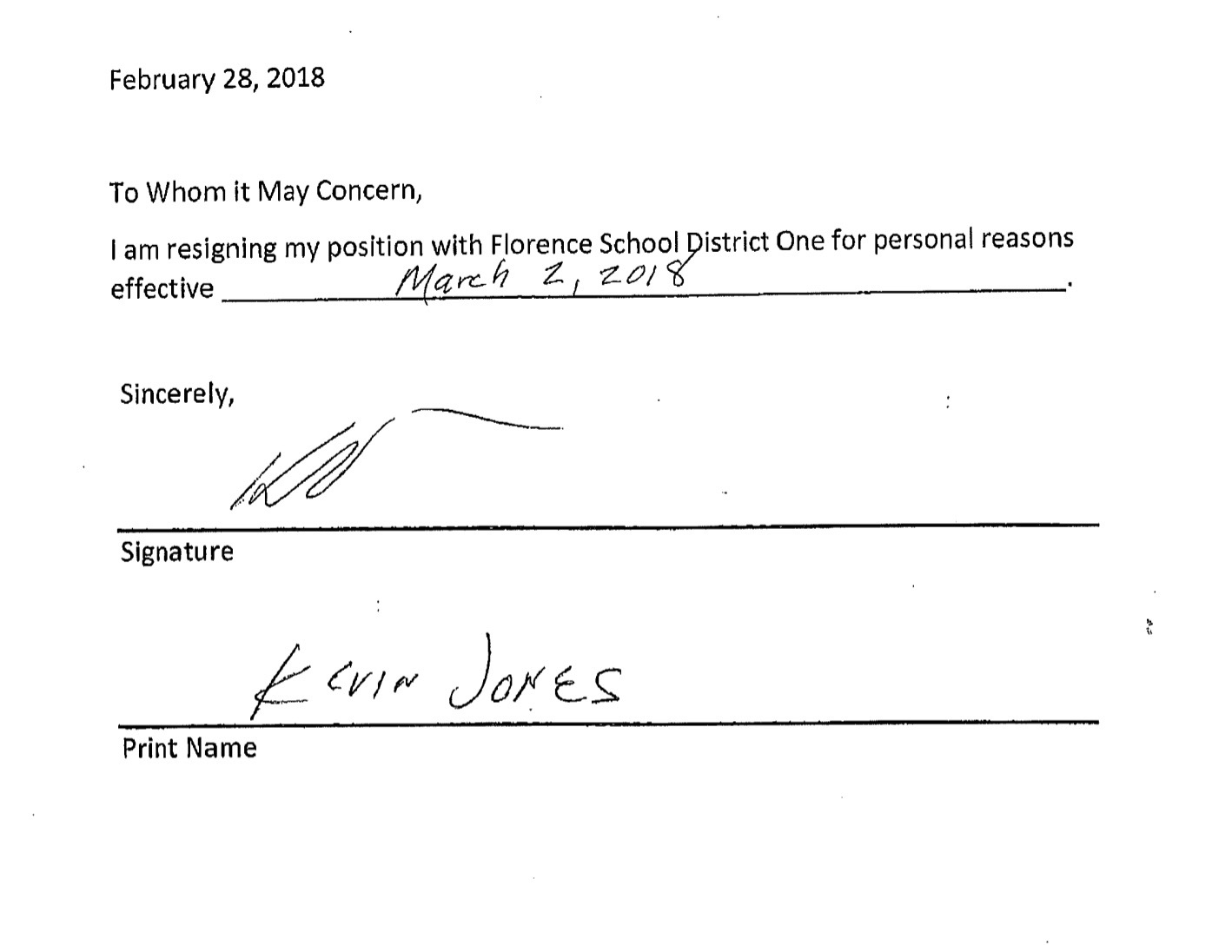 Two-and-a-half weeks later, Jones submitted a “fill-in-the-blanks” letter of resignation identical to the one submitted by Quick.
