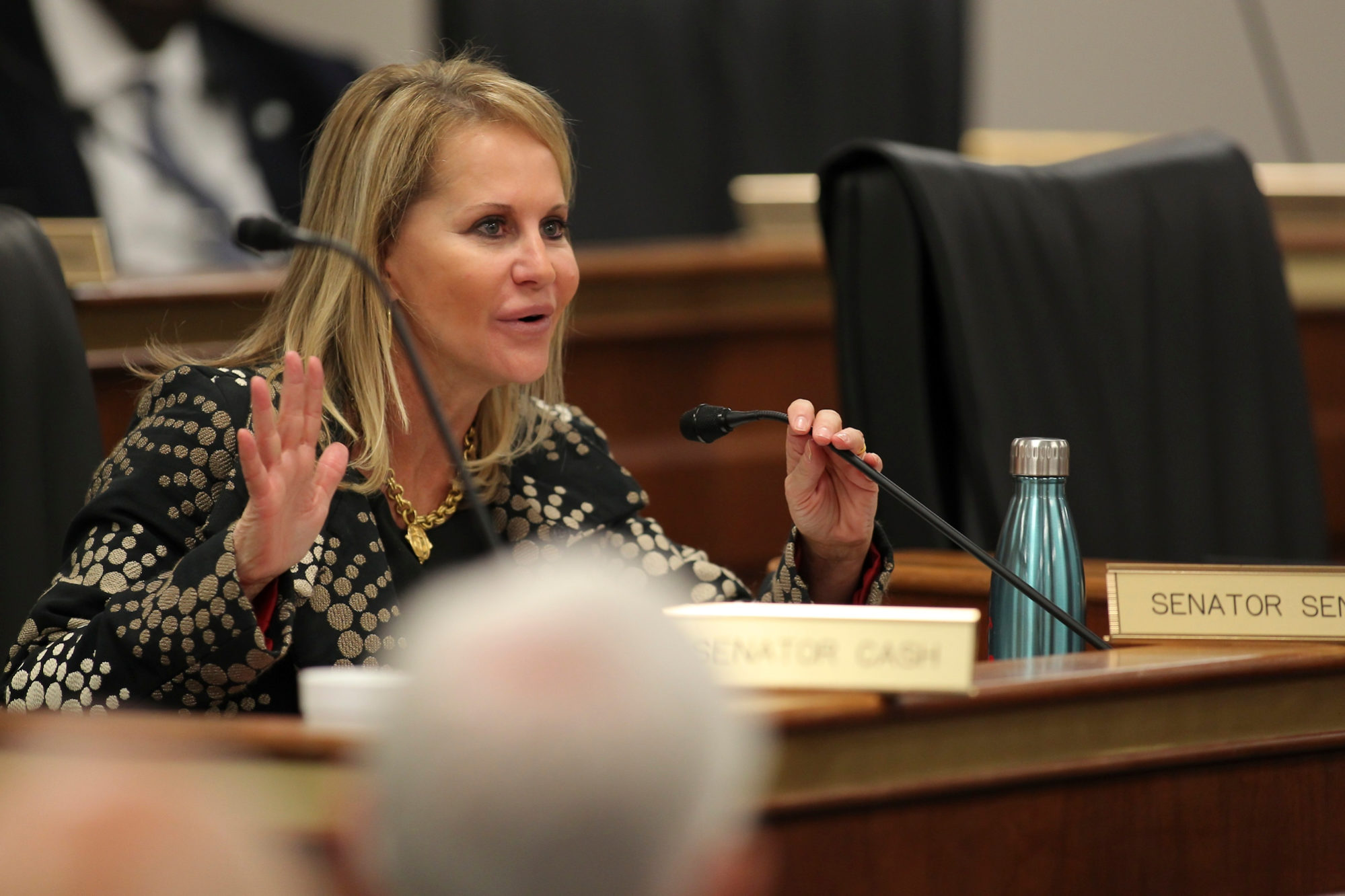 Senn (below) is also an attorney, but we don’t see her gumming up the legislative process in an effort to route pay raises to the judges in her circuit.