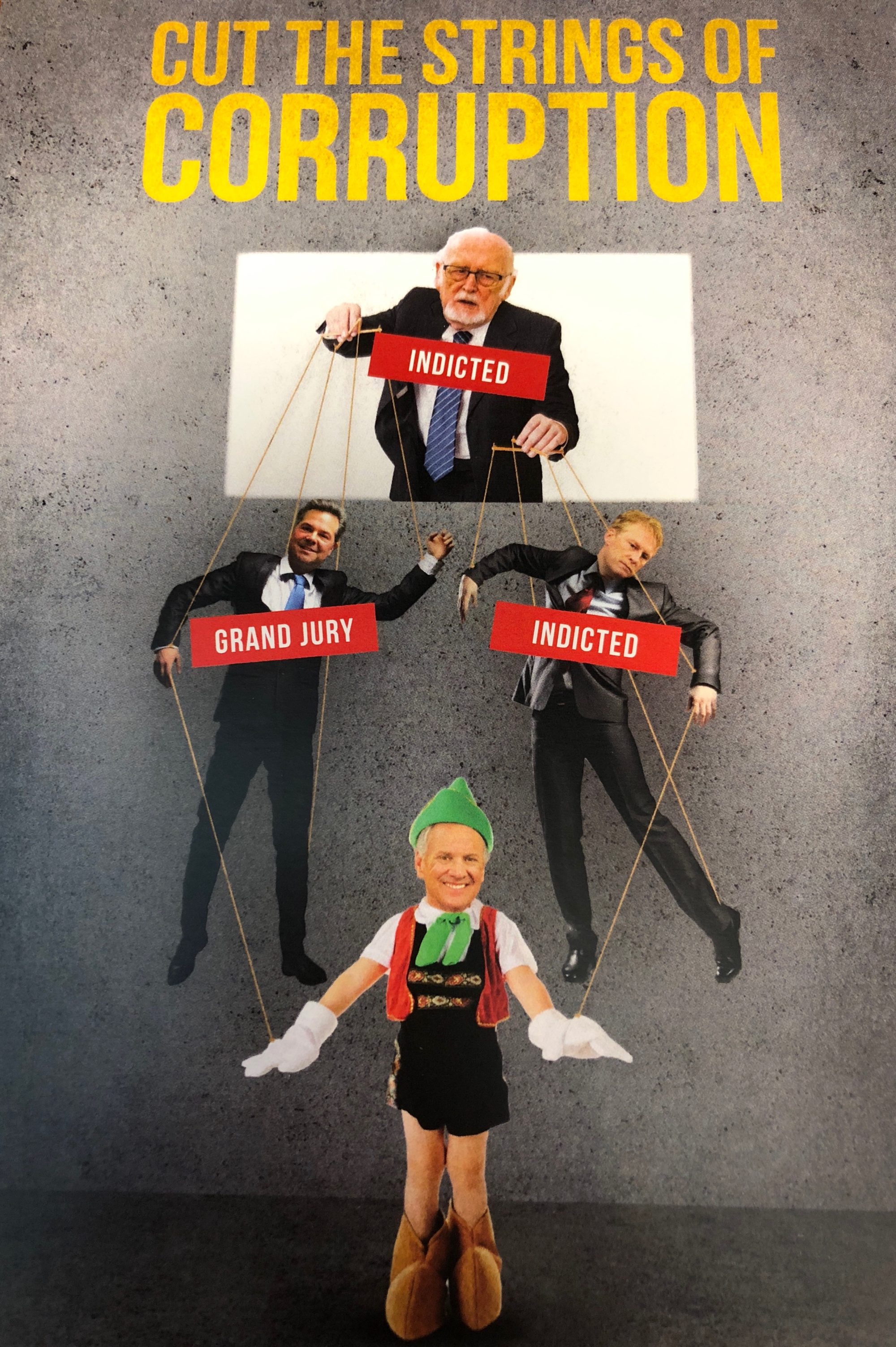 The piece – entitled “Cut The Strings of Corruption” – portrays McMaster as a puppet of Quinn, his son (former state representative Rick Quinn) and McMaster’s gubernatorial chief of staff Trey Walker.