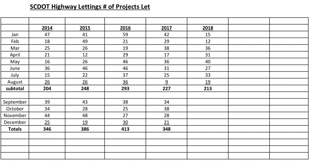 Conventional wisdom has long held that higher taxes – which took effect on July 1, 2017 – would lead to an uptick in construction and more projects being let (i.e. awarded) by the S.C. Department of Transportation (SCDOT).