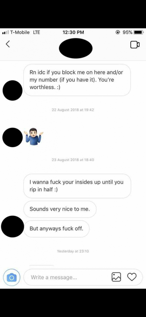 Beyond this, we were provided with screenshots of some of the harassing/ threatening messages allegedly sent by the male student to females – and were eventually able to speak on the record with a mother of one of the alleged victims.