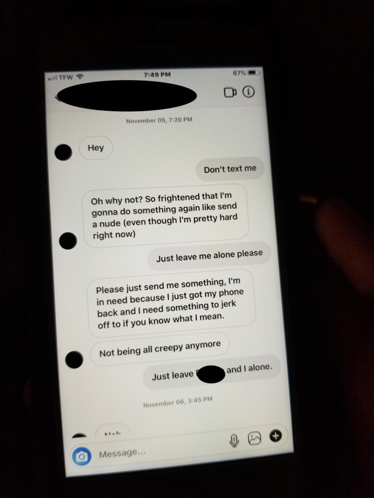 Numerous messages detailing this pattern of alleged harassment were provided to local law enforcement. Here are just two examples …