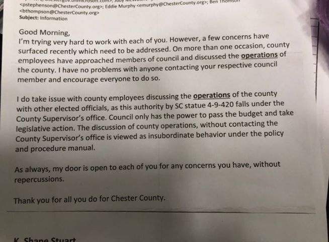 SCMore Chester County SC DramaUnderwoods, county administrator facing additional scrutiny … by FITSNewsJuly 21, 2019July 24, 20190 On May 21, 2019 – two weeks after the federal indictment of Chester County, South Carolina sheYou must Subscribe or log in to read the rest of this content.
